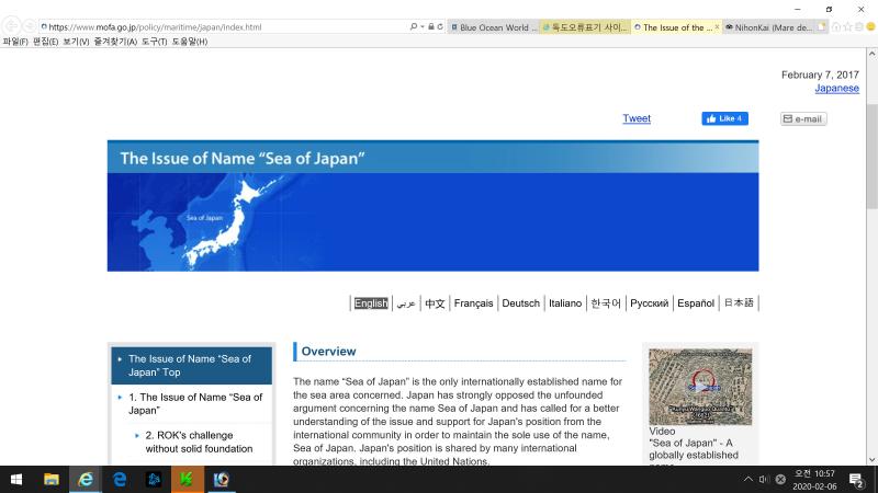 µ¿Çظ¦ East Sea °¡ ¾Æ´Ñ Sea of Japan À¸·Î Ç¥±âÇÞ´Ù